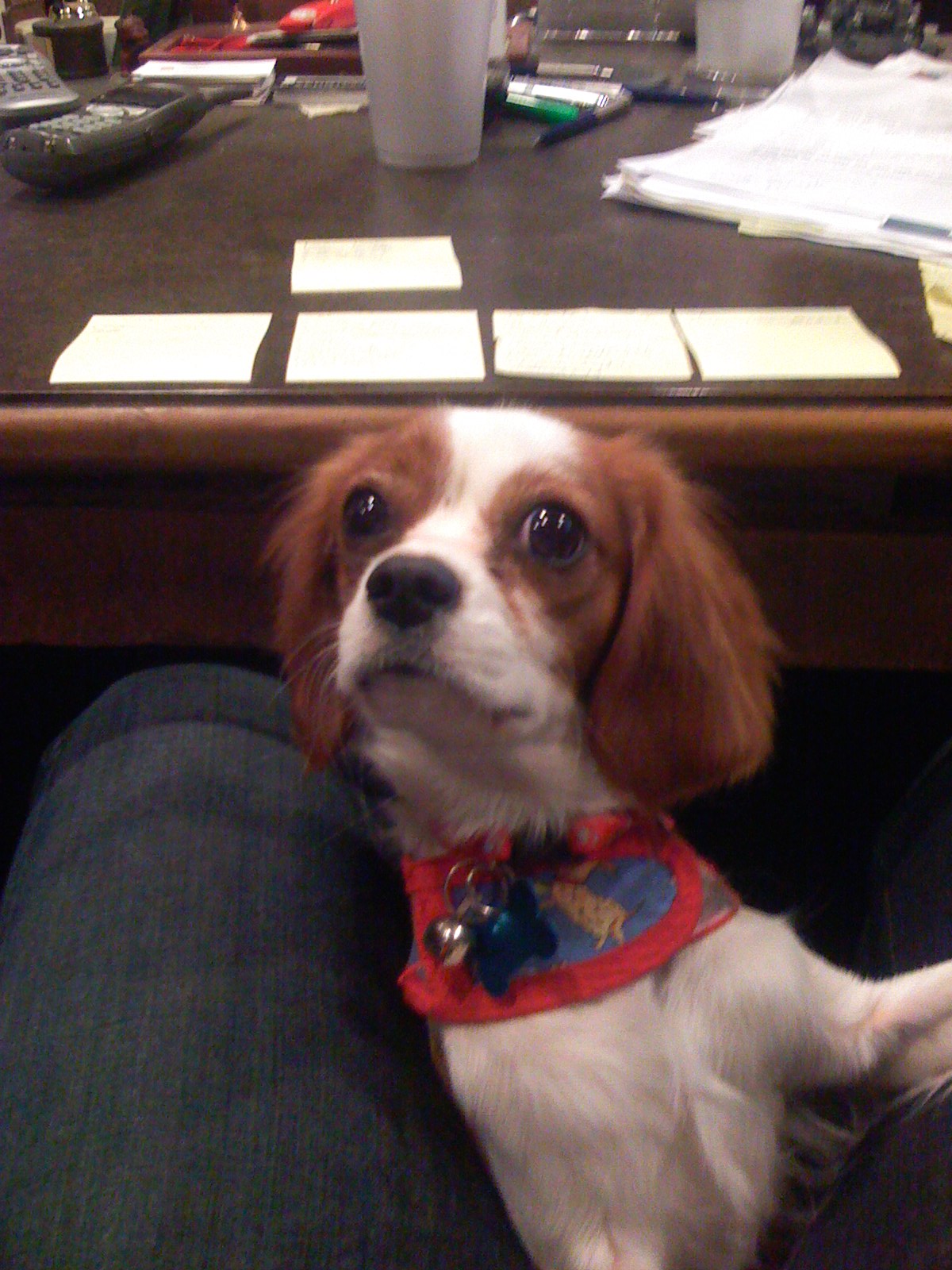 Dixie is learning to use the computer. Wilie just wants to sleep.