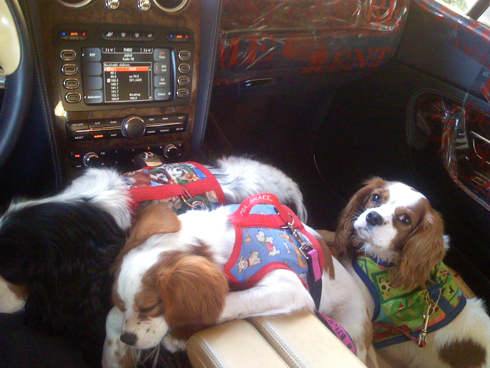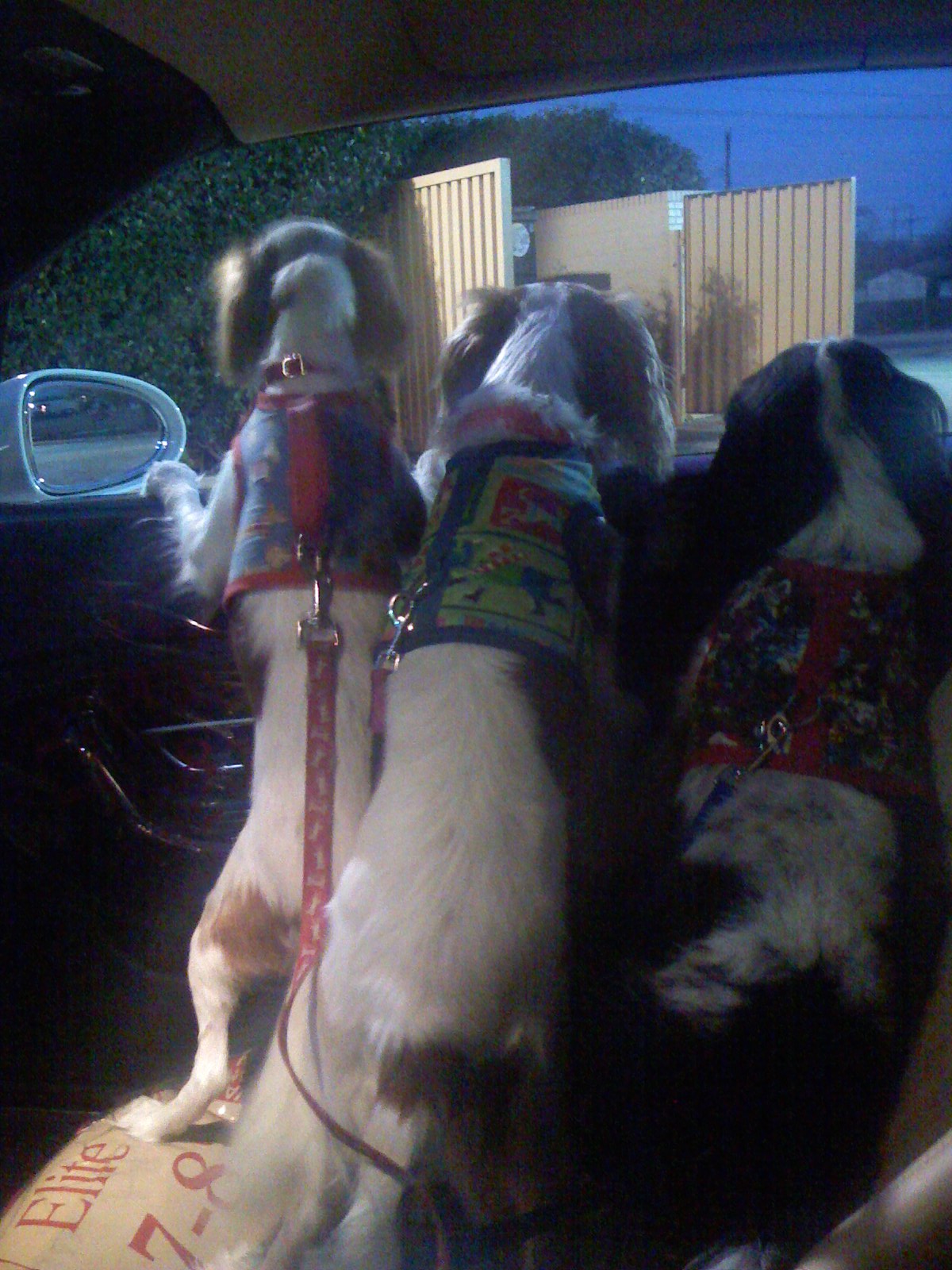 We love to go riding in the car. Daddy says we are a pain in the ass, but we love to smell the air and watch things