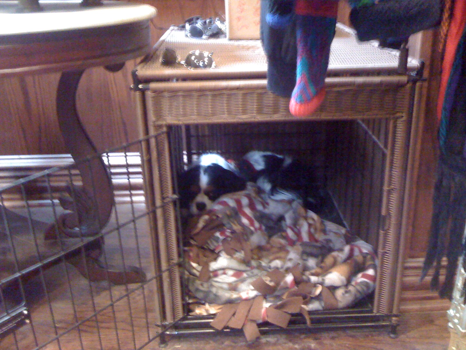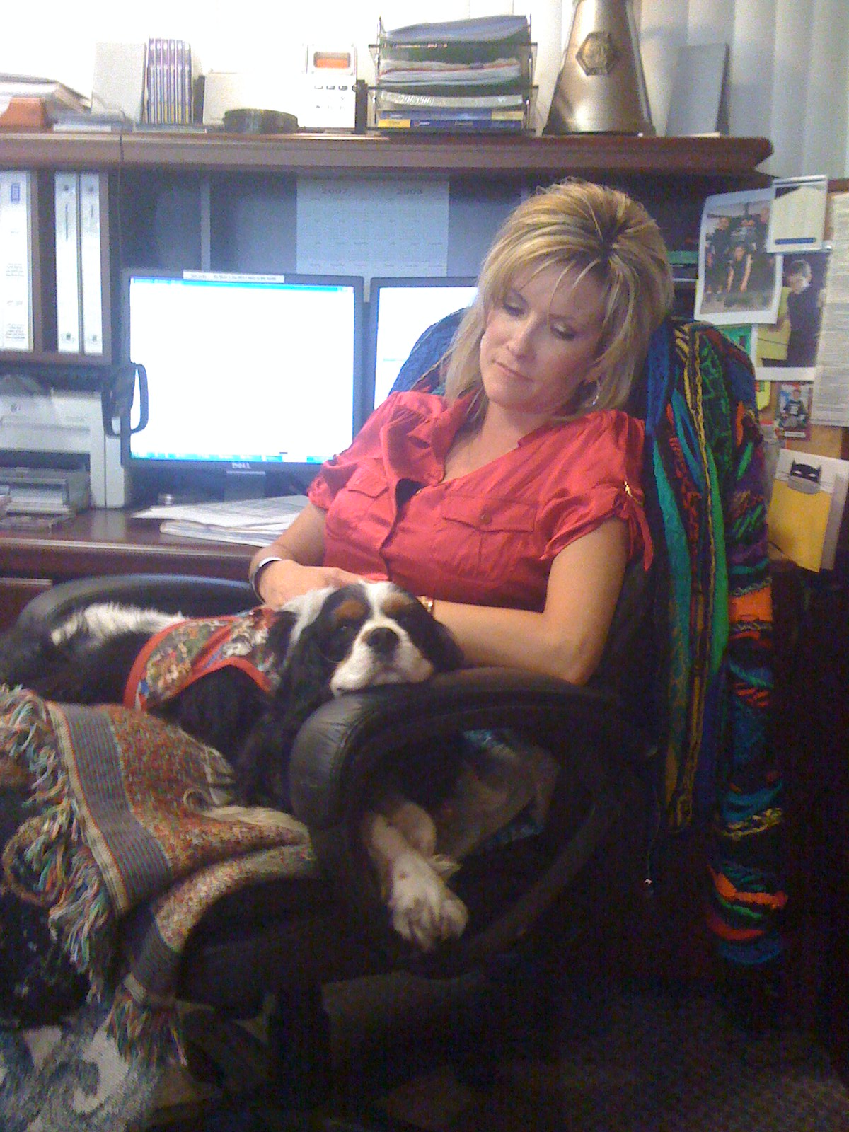 Or if they want to be close to daddy, they lay under his desk or right by his chair, by the file cabinet.