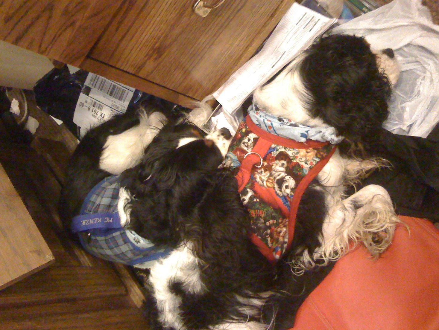 Sometimes they just lay on the floor and patiently wait for daddy to come back!