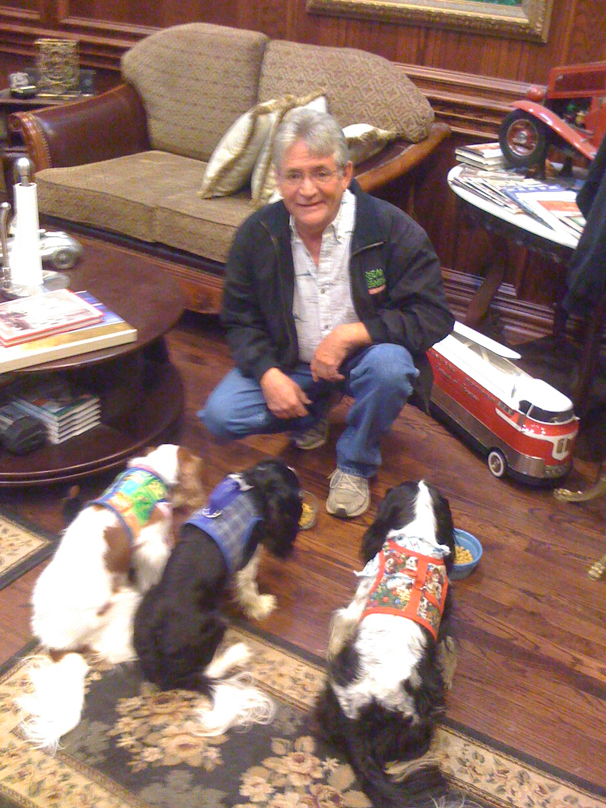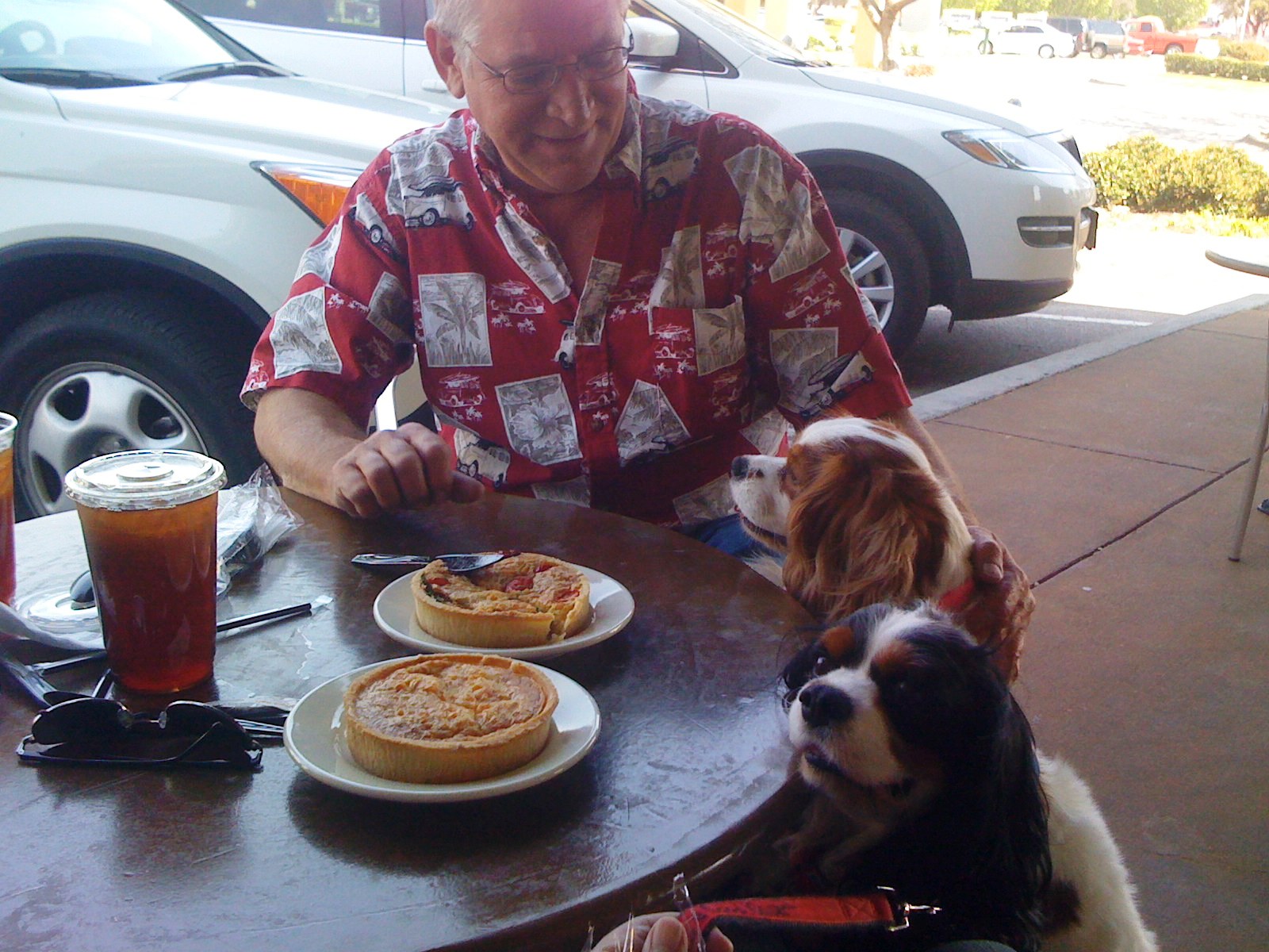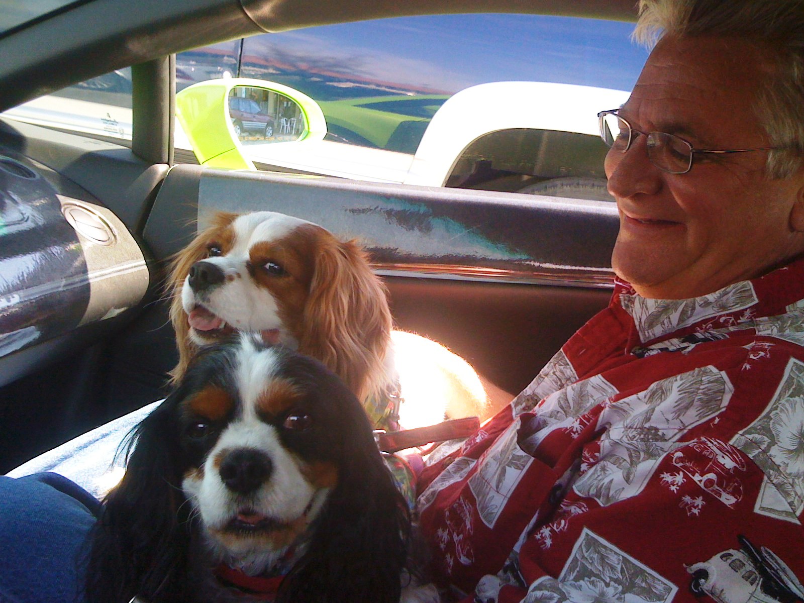 Uncle Rodney is Daddy’s friend and assistant. He takes care of cars, toys, and puppy dogs. he feeds us, takes us outside to potty, and whatever we need when we are at work, cause daddy is busy a lot. He even trains us to sit before we eat! He is very nice to us, and he loves us very much. He also goes with us in the car (here we are going to an exotic car show!), and then we got to eat at an outdoor cafe. Well…really..him and daddy ate, we watched and were abused as usual.