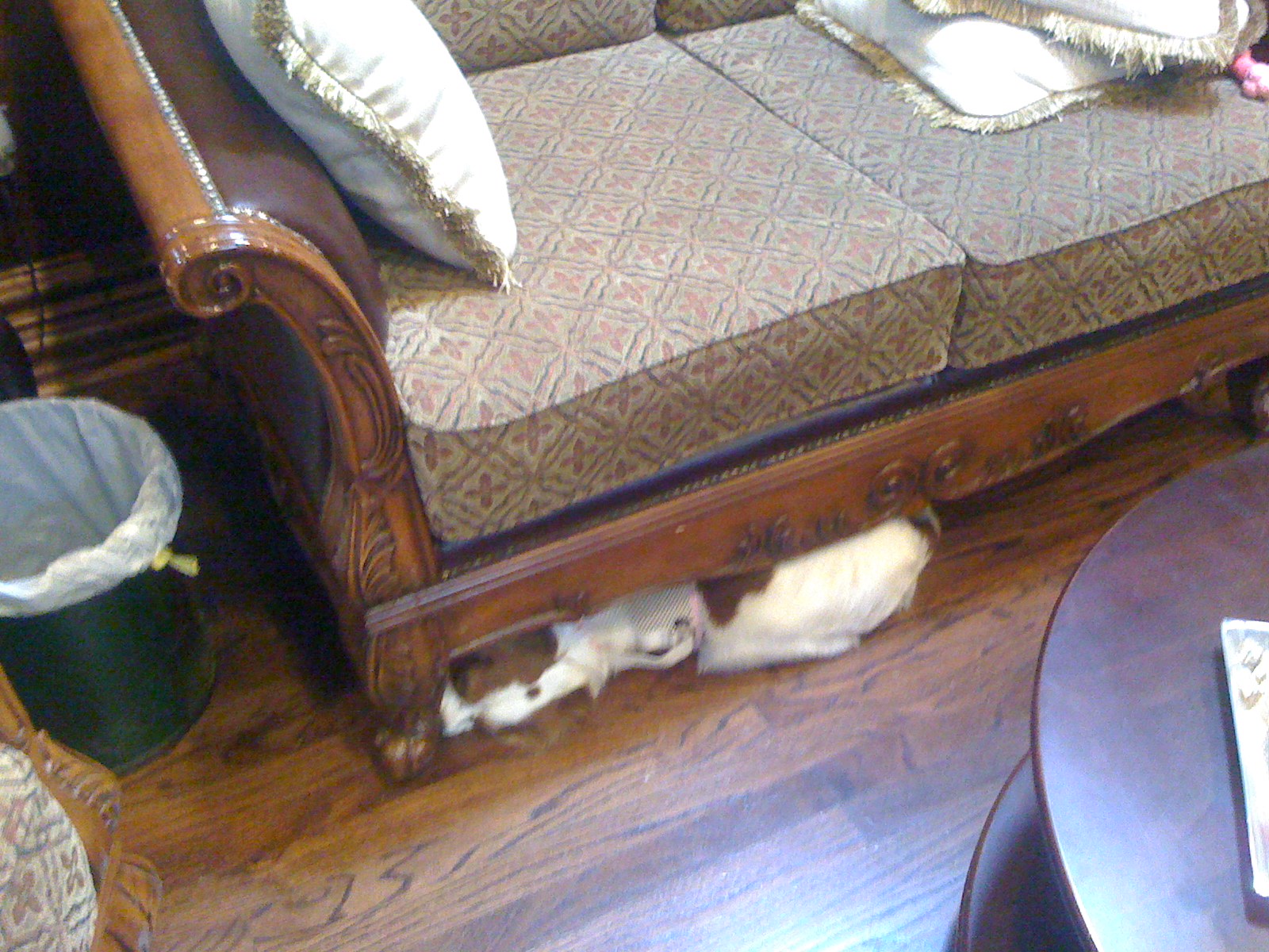 Dixie thinks she is so smart! Ha! She got under the couch but couldn’t get out in daddy’s office. it was pretty funny, at least to me, daddy didn’t like it.