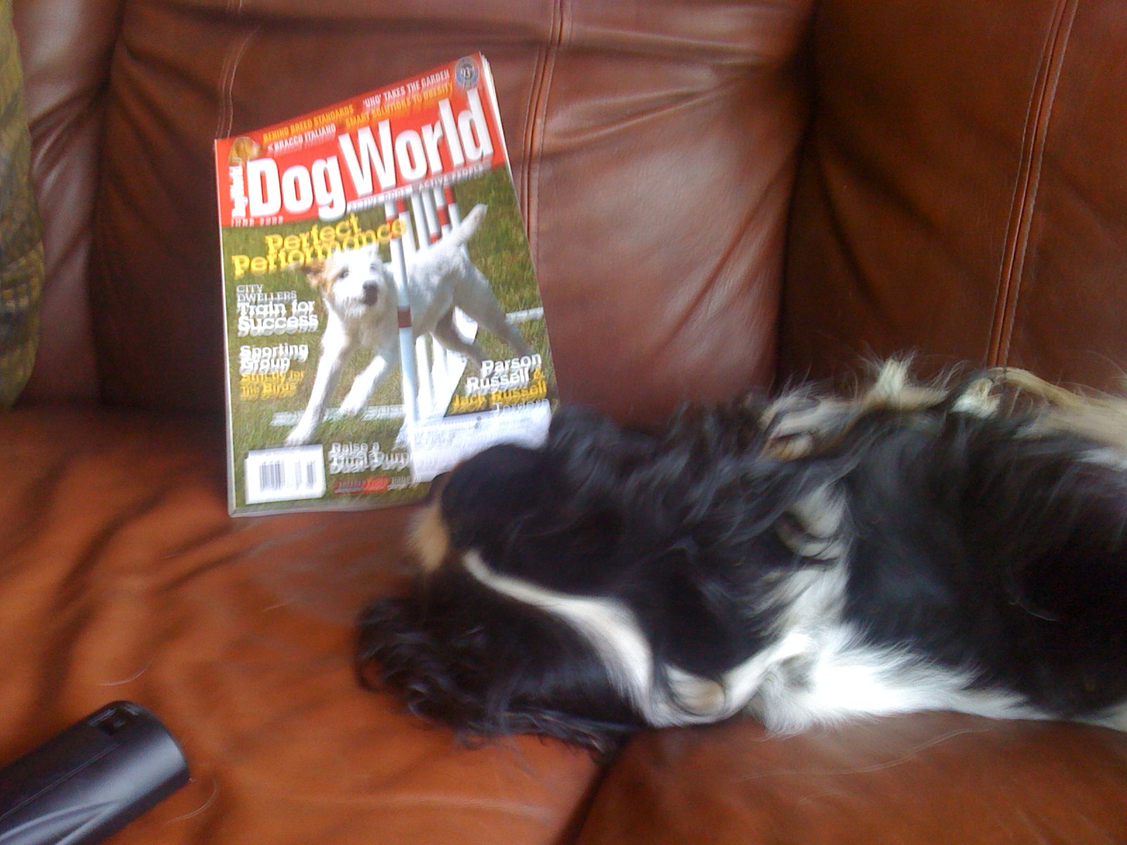 Willie likes to read, his favorite magazine is Dog World. He’s very tired here, though, cause he’s been reading for a while. Dixie says he cant read, he just looks at the pictures, but Willie says she’s a bitch anyway so don’t listen to her. Anyway, Dog World Magazine is Willie’s choice!