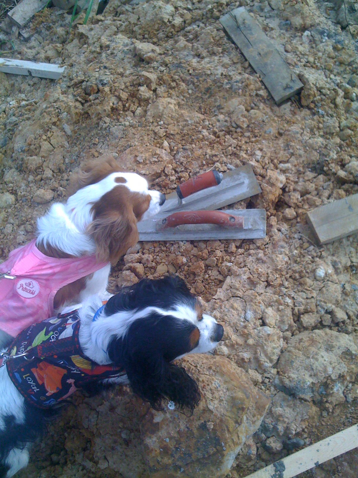 We recently went with daddy to a construction site where he is building a new building. there are lots of cool things at a construction site, discarded food, it stinks (Willie says it smells good), plus lots of workers and equipment. these big concrete trucks shake the ground!