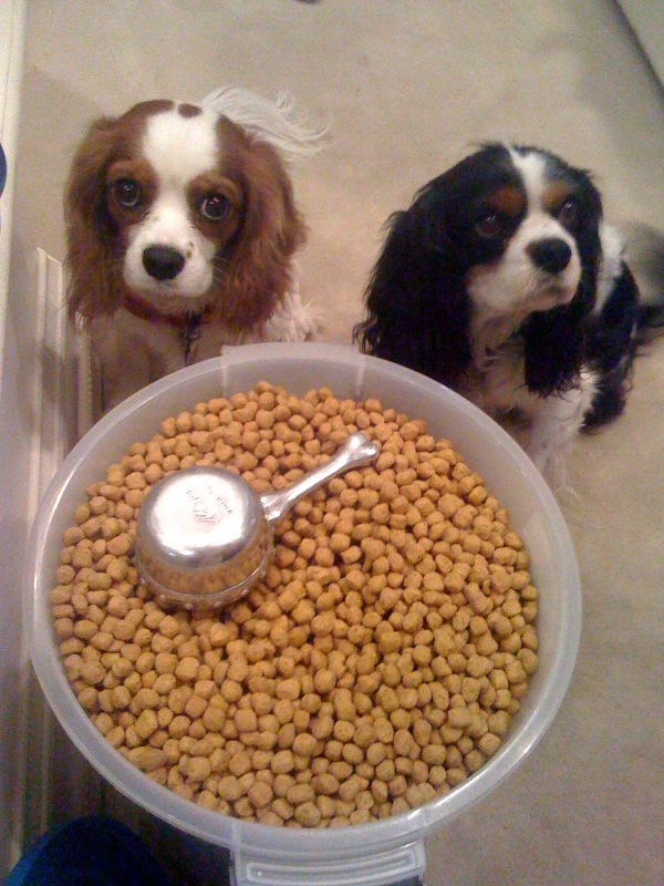 That is about one day’s worth of food for my big yellow Lab, but it might be a little much for a Cavalier, even a spoiled one.