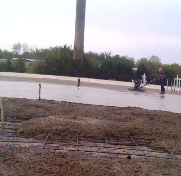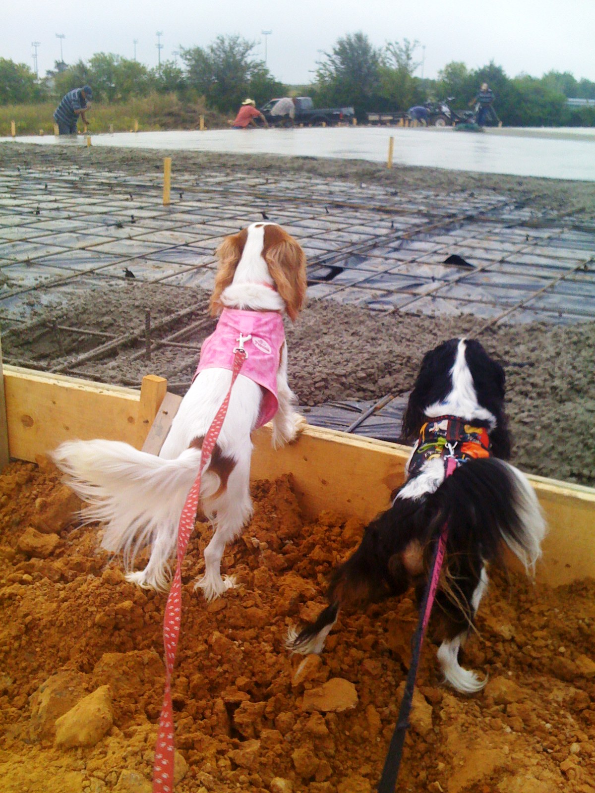 OOOHHH! Now This is cool! Daddy says this is a very big slab, 36,000 square feet, so it takes lots of workers to pour the concrete, and they have to use the big pumper truck to reach every place they need to go. Ragon Construction, Joe Ragon, is here, making sure everything goes smooth, but daddy wants us to inspect the work as well. We were gonna put our footprints in the concrete, but daddy didn’t think that was a good idea.