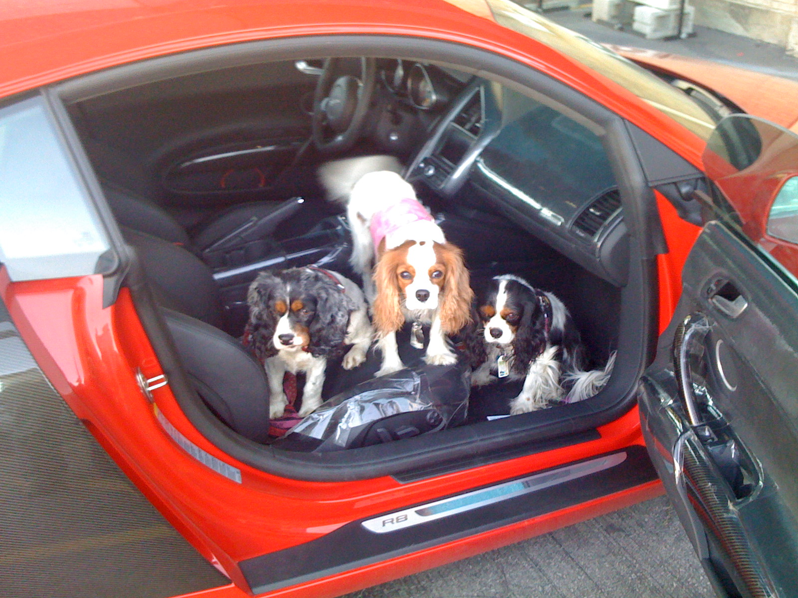Daddy says we are lucky dogs, cause we are the only ones riding around in an Audi R8. He takes us everywhere. We are trained to only get out of the car on the passenger side. (he says we cant get on the drivers side cause we cant drive yet)