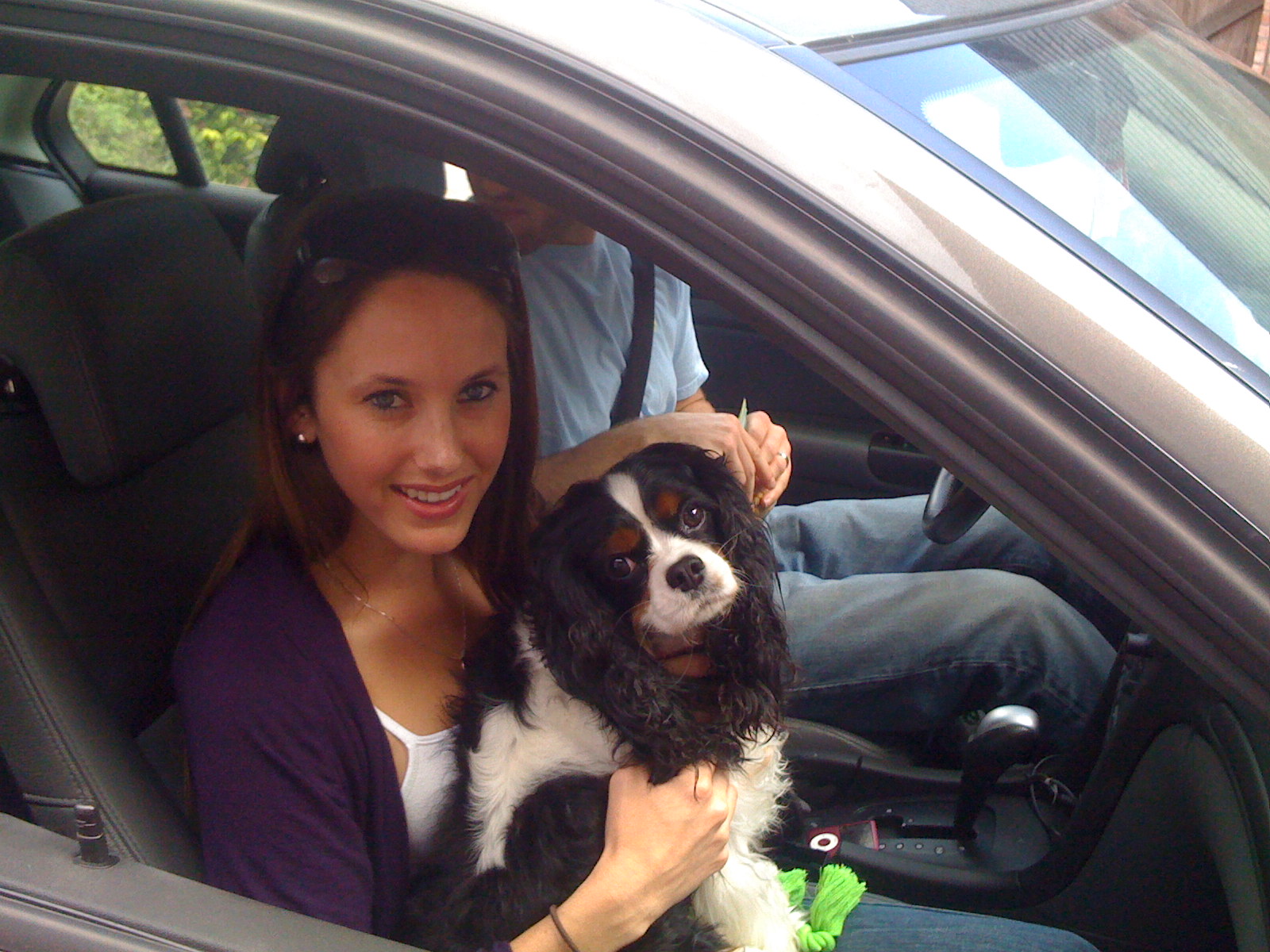 Here he is, fixing to drive away. Well, ride away. Daddy got kind of emotional, he doesn’t do that very often, but he always reminds us that when we rescue a Cavalier, then send it on to its forever home, we can rescue another one. Samson looked pretty happy, he’s ridden in Lamborghinis, Ferraris, Bentleys, even a Audi R8, but he’s never ridden in a Saab. Willie says Saab’s are the best of all, but Dixie says he is full of it, just trying to impress car people.