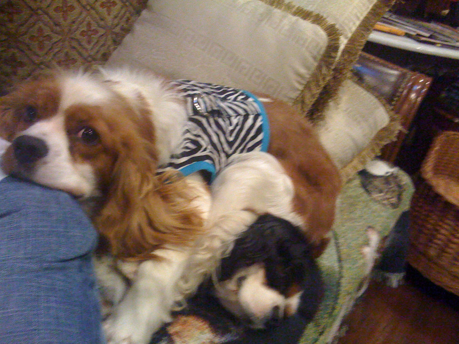 Cavaliers love to use each other as a pillow. they like to just lay on top of each other, its very cute.