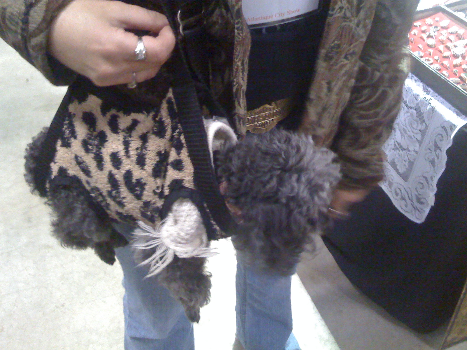 Daddy showed us the picture of this dog carrier he saw at an antique show. Willie wants to get one, so daddy can carry him around. Daddy says he’s crazy and way to fat to be carried around, he weighs almost 20 pounds. But it is pretty cute, for a small dog. Don’t let Lance see it, he weights 8 pounds and could ride in it easily. Some dogs from the Cavalier King Charles Rescue organization can be this small daddy, says.