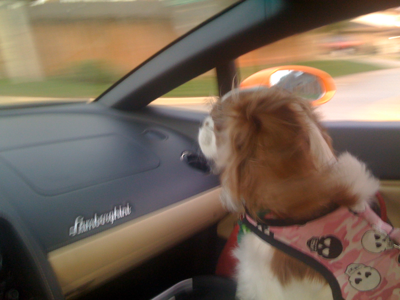 I’m watching daddy go faster! Dixie likes the orange Lamborghini Gallardo But she doesn’t make the payments.