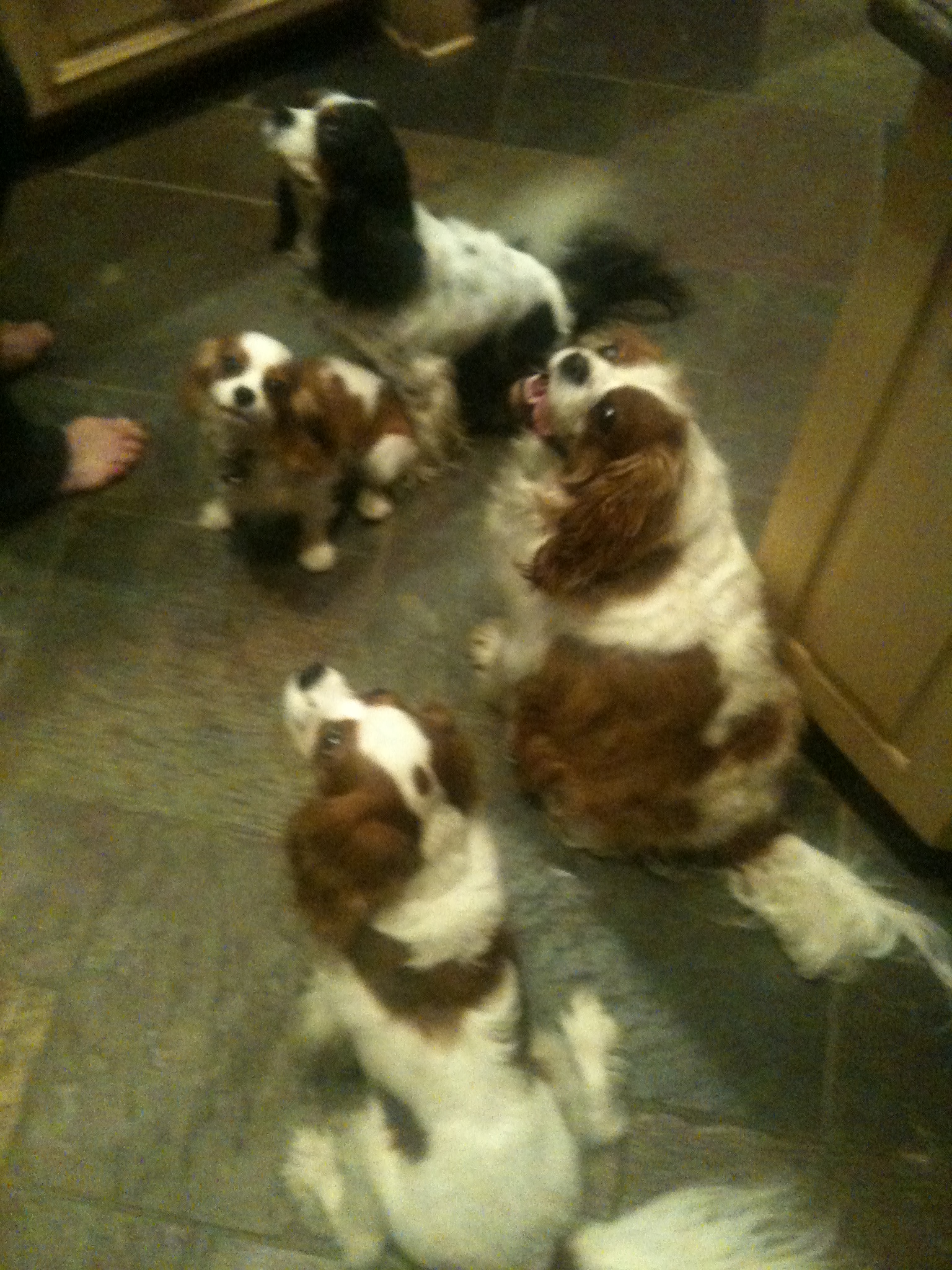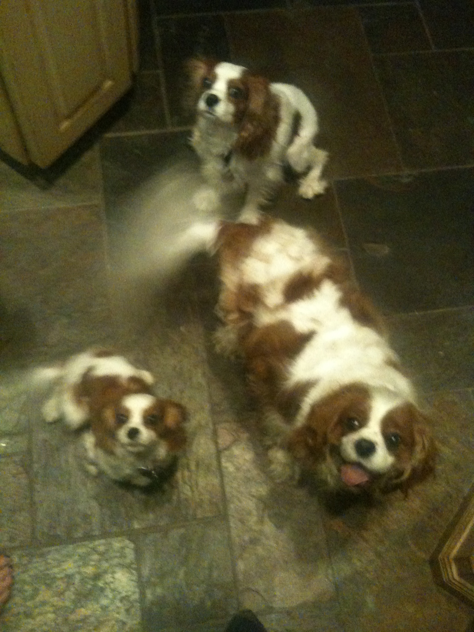 How wonderful that you rescue, I have a TRI boy who is 2 named Walnut and a 12 days ago we just adopted a BLE boy who is 3 named Widget. His owner passed away and when he came to the pound he was matted, stinky, and just needed lots of attention. I could not believe that a King Cav was at the pound and was there the second they opened, he is an amazing addition to our family. Yay for you for opening your home and giving the love.