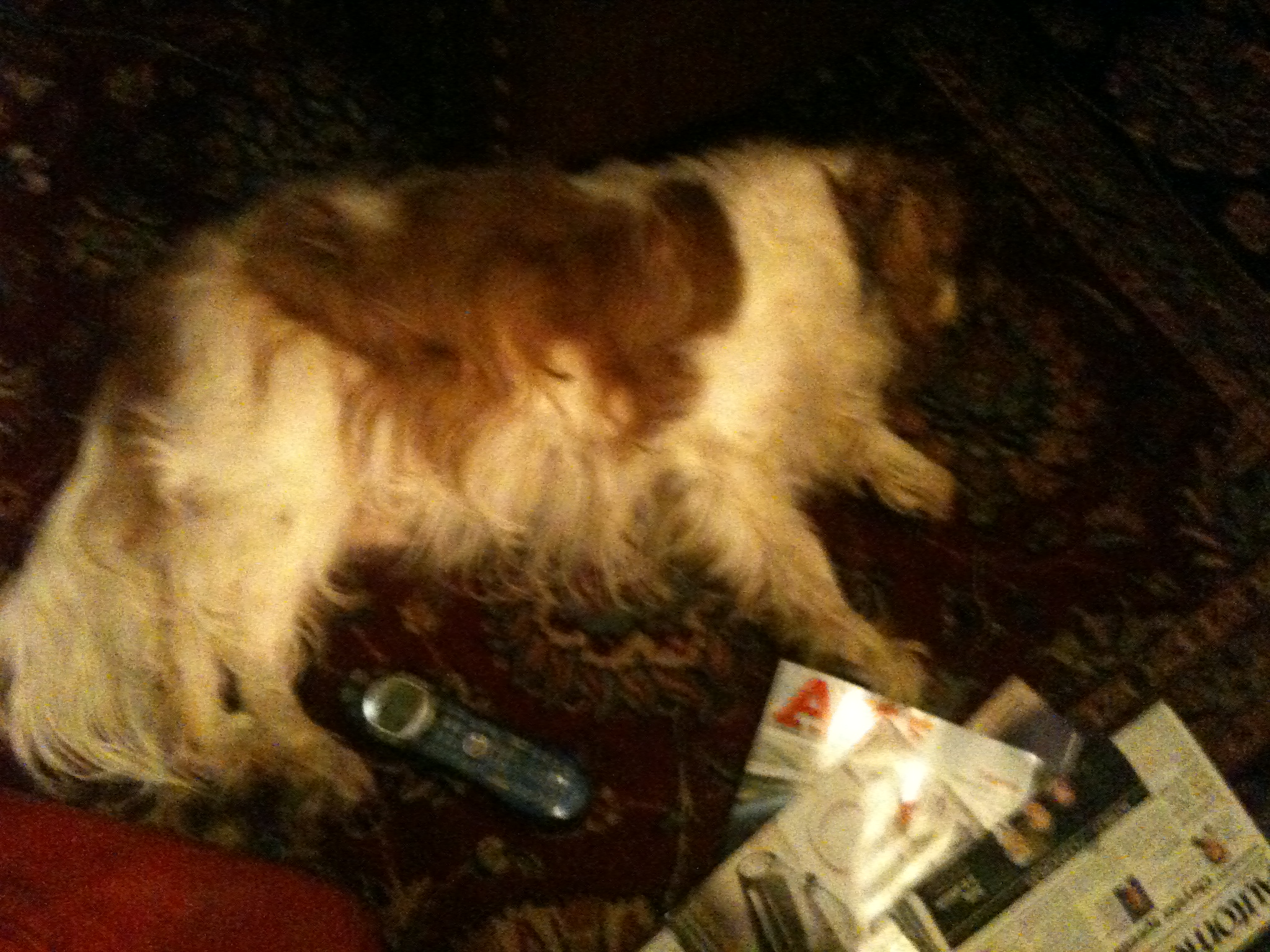 This is Arthur our newest foster. He’s 4 years old, sweet as can be. He is housebroken too. I can only say two negative things about him. He’s WAY overweight. and he Snores real loud. Its ok, Dixie says, all men snore. We think after he loses some weight he wont snore. His past mommy got old and had dementia, and couldn’t feed him correctly or even track what or when he was being fed. She is to be commended for recognizing that her companion was best with rescue. Arthur weighs in at 36 lbs (average weight for a Cavalier is 14-17 lbs), close to the largest I have ever seen. He is beginning a rigorous exercise regimen today (daddy hired a dog walker, you didn’t really think Daddy was going to do all that exercise did you?) He is eating O.M. (Overweight Management dog food by Purina, from the vet’s office). Dixie and Willie eat OM, and mange their figures quite nicely. Daddy says he needs a bath too, he has a LOT of nice hair. You can see other rescues at the National rescue site, or go there to fill out an application to adopt Arthur.