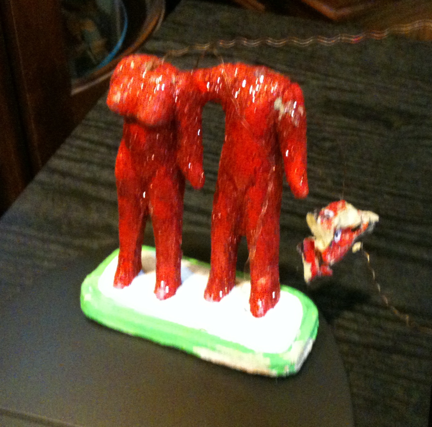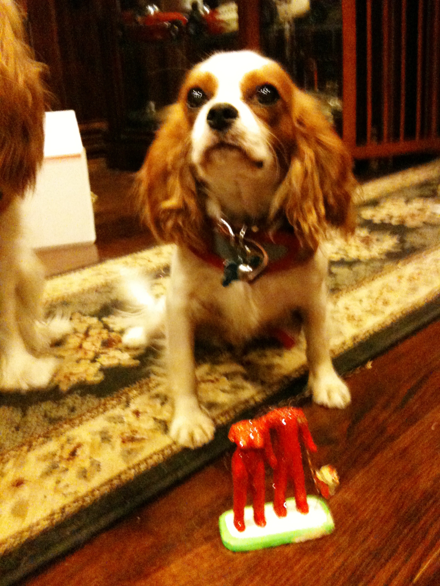 Boy, Lance is in BIG trouble now, Daddy says he is tradin’ him for a weenie. Dog. Daddy had a little statue in his office, with bobbing head. It was an antique or something special, who the heck knows. Anyway, lance thought it was a toy. At first he tried to blame it on Dixie, but Lance is a lame liar, and he’s so sweet anyway, he cant fib to daddy. You see what happened. Its not good.
