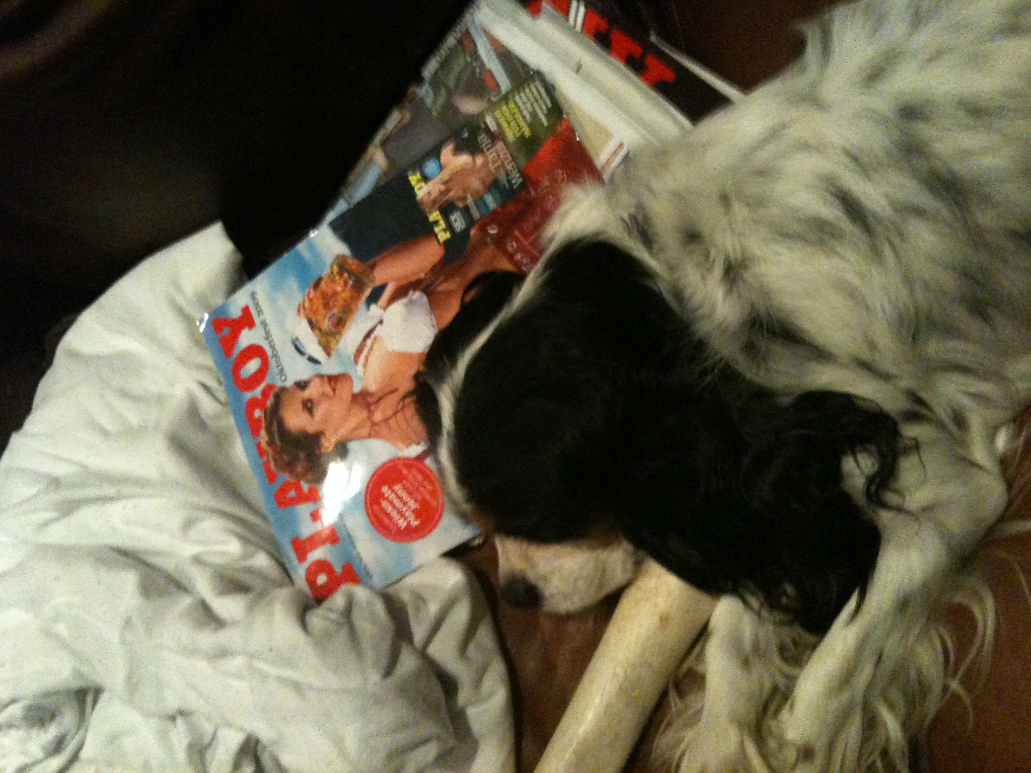 Willie Gets caught AGAIN, reading girlie magazines. Daddy caught him last month reading Cosmopolitan, and thought he might be perv. Dixie says he is just a pig, all males are pigs she says. Well, this time it was worse, ’cause daddy caught him red handed (er, paw’ed) with a Playboy! Daddy said it was disgusting. We are still trying to figure out where he is getting all these magazines. Daddy says he is going to get to the bottom of it. Lance said the cleaning lady must be leaving them, or the landscape people. Daddy was ’gonna ground him, but decided to just let him off the hook, since Dixie is a real bitch sometimes and he lets her get away with anything. Making the mystery even more serious, this was a GERMAN playboy. Daddy went to Frankfurt New Car Show last month, and he told us that the next time he goes to Germany he is gonna for sure figure it out, but in the interim, he is gonna leave a note for the landscape man and seen if he might have left this German magazine here. Daddy says he is pretty sure Willie hasn’t subscribed to Playboy