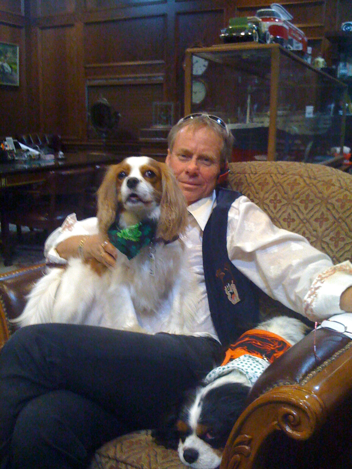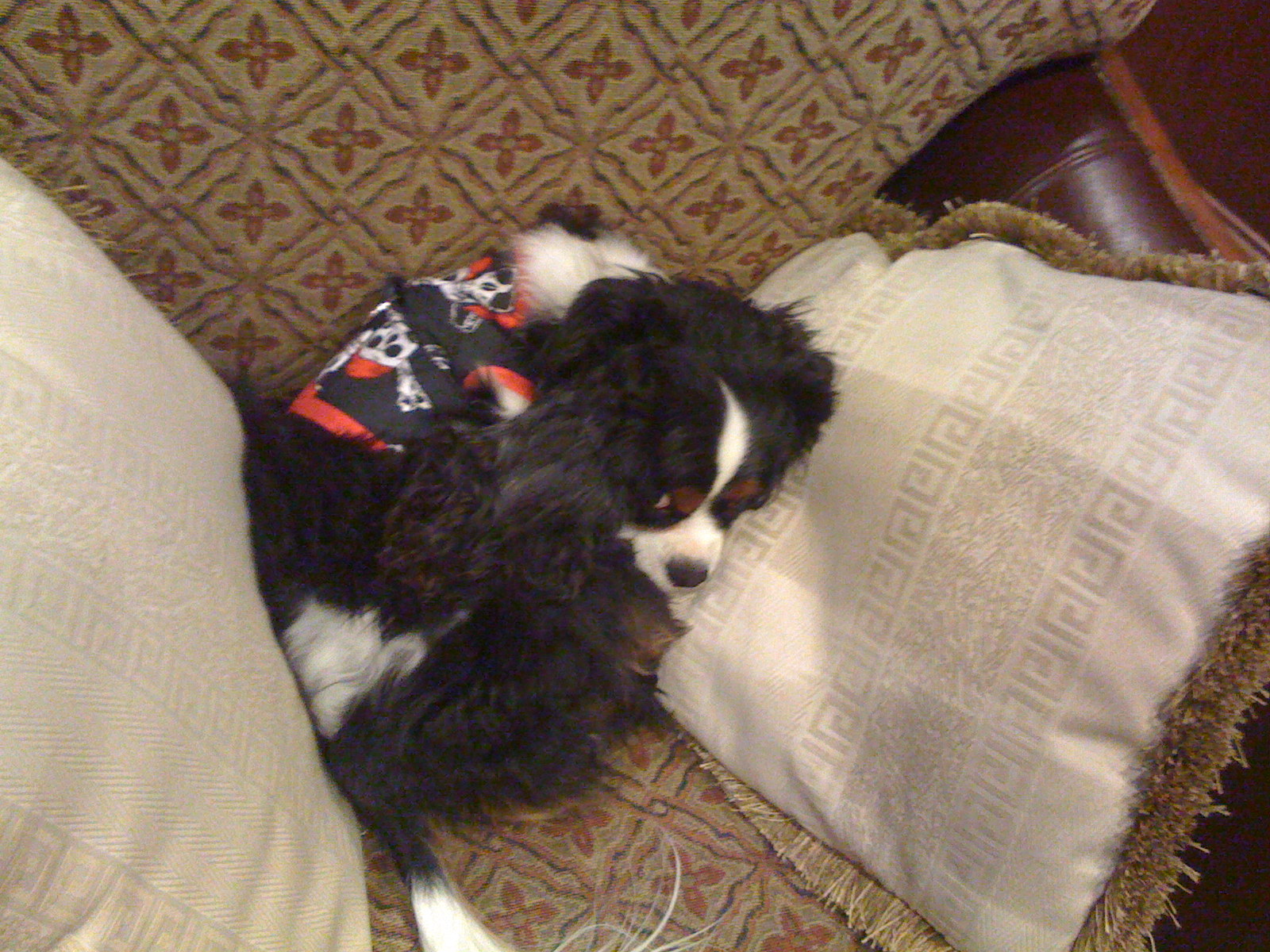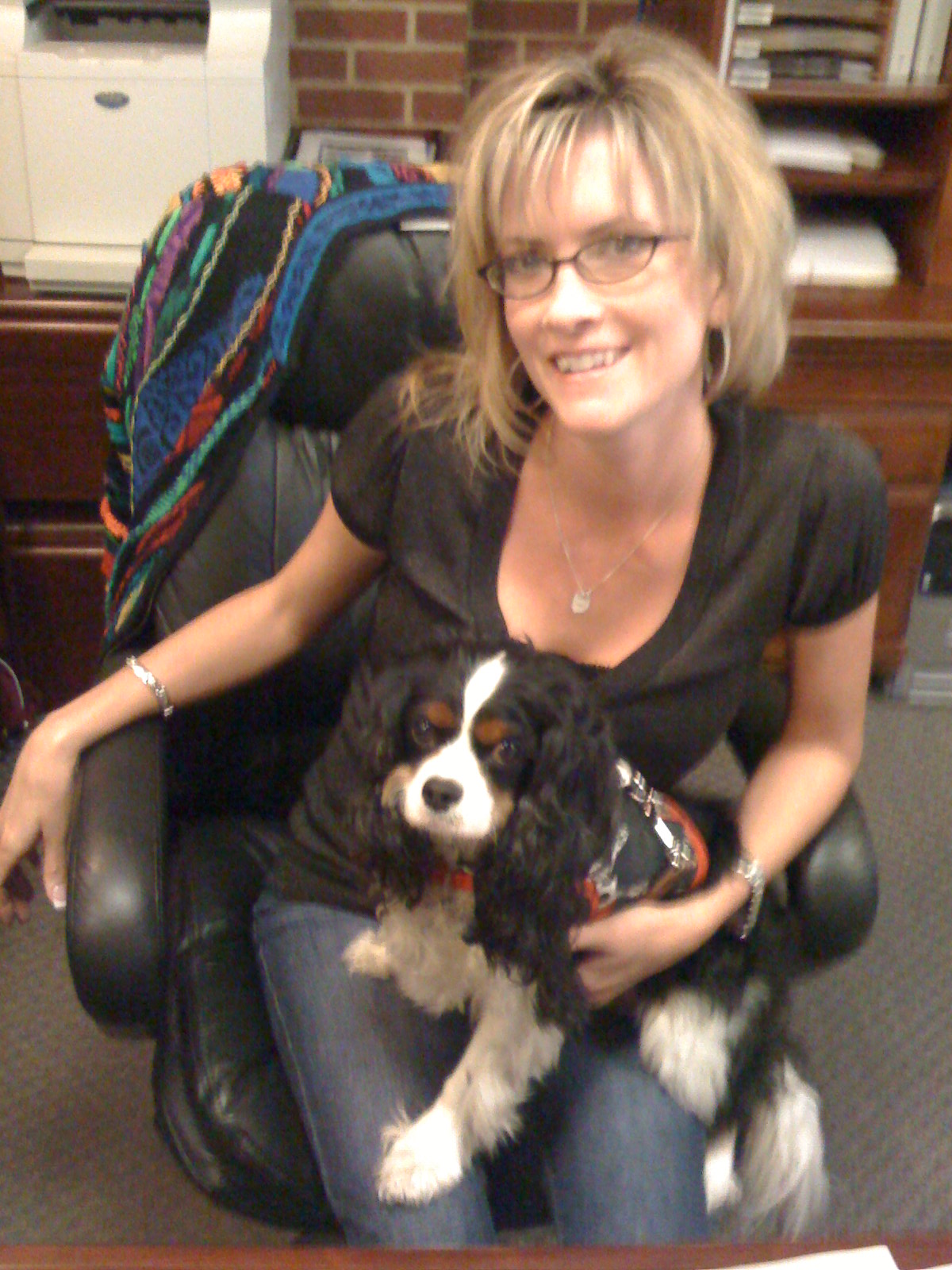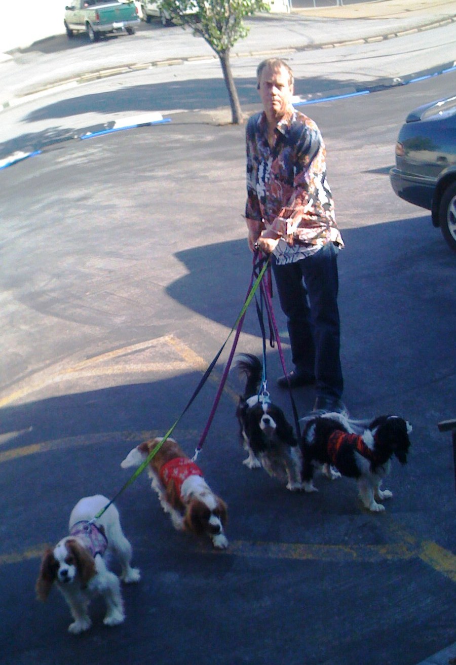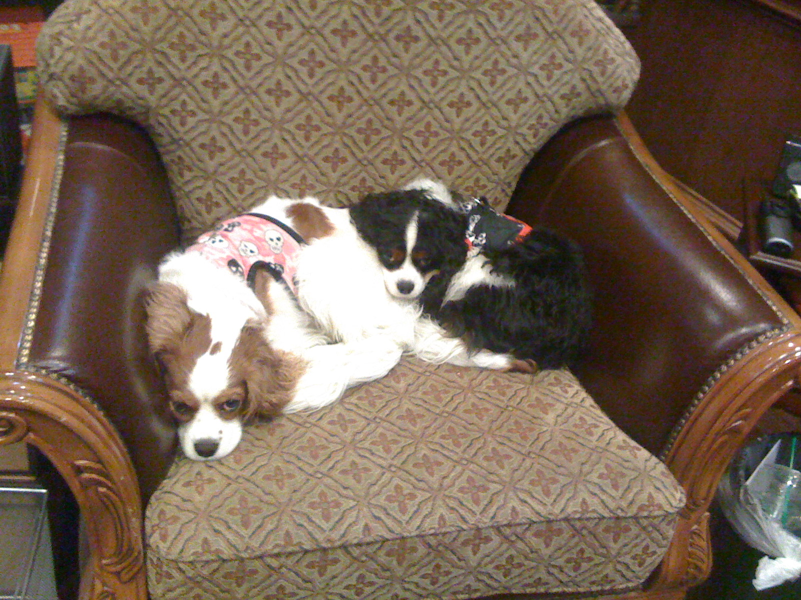 We go to work with daddy every day, and most Saturdays if he works, He works too much, and sometimes we stay real late at night. Its fun though, and we get to meet a lot of people, and do fun things. Sometimes he takes us to the bank or other places where puppy dogs are welcome. The little tri boy is Samson, he was a sweet foster some time back.