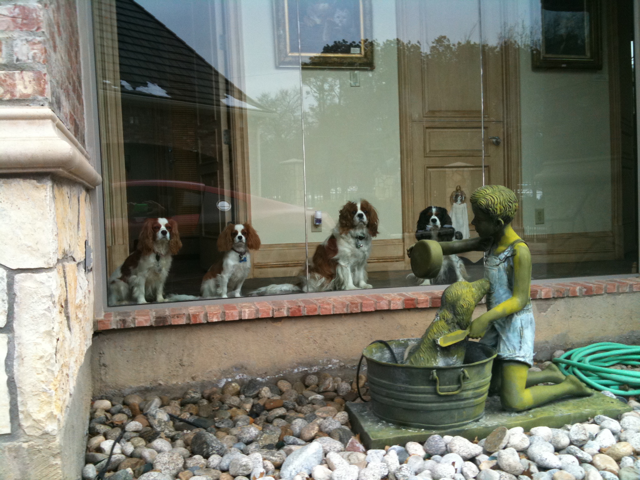 We like to go everywhere with daddy, and we just love to be around people. When he leaves us at home, we wait by this window for him to return. Sometimes we wait for hours and hours, we are always here waiting. Daddy says we are loyal and sweet babies.