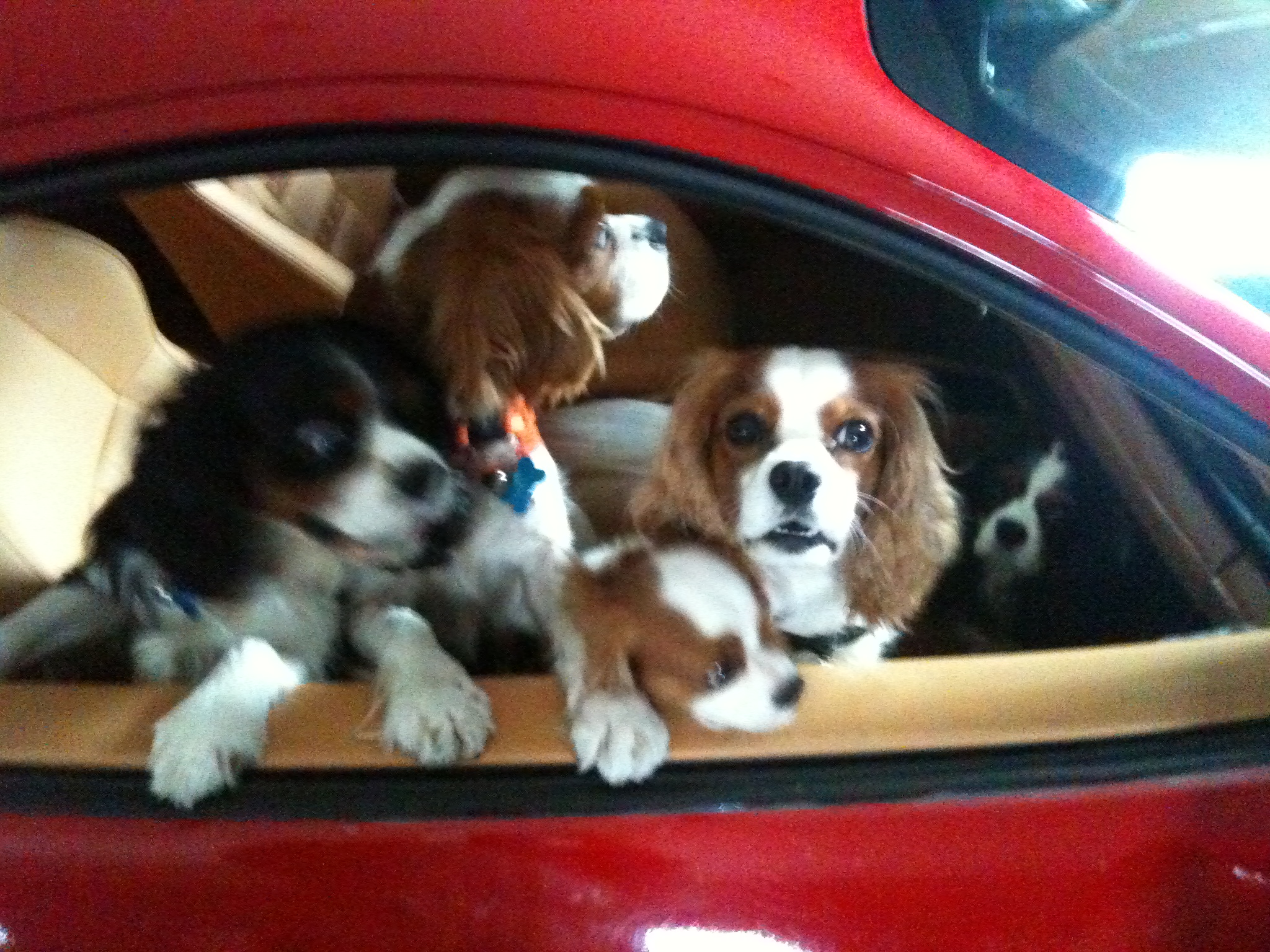 From the left, Puddles, Porsche, Dixie and Lance. Willie is in the floorboard where he rides most times.