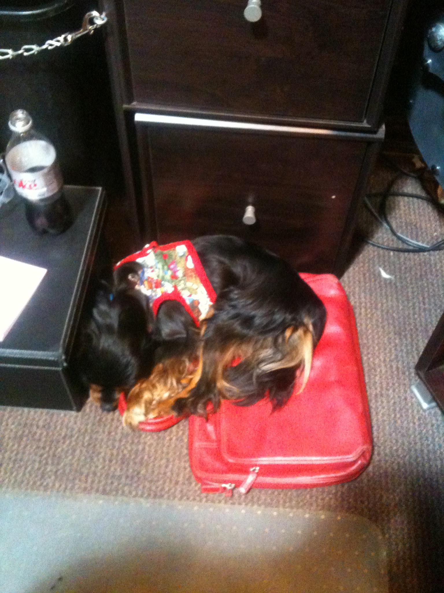 Tucker sleeping in daddy’s office after guarding the empty bag