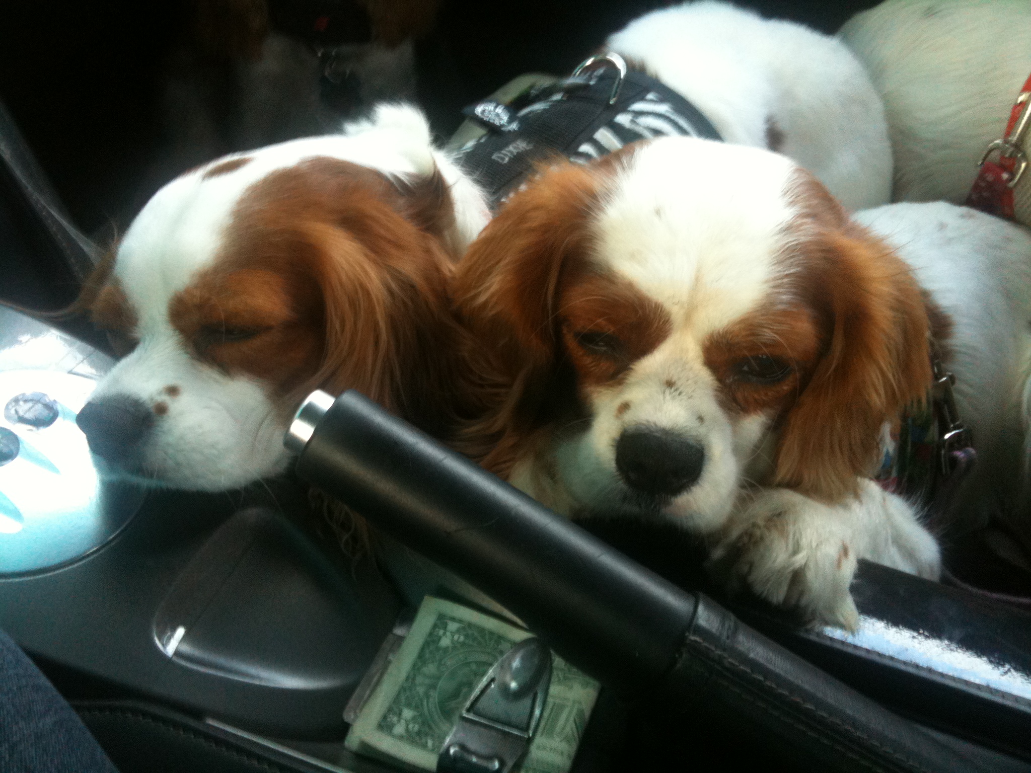 Daddys been telling us now for weeks that he has no bone money. Willie said he got a new tire for one of the cars though. We think he’s working to much and just doesn’t have enough time to take us to get bones. We guess its ok since we are with him all the time, so we know he isn’t cheating on us. Willie says this picture he took proves daddy has bone money. But we aren’t sure. What do you think?