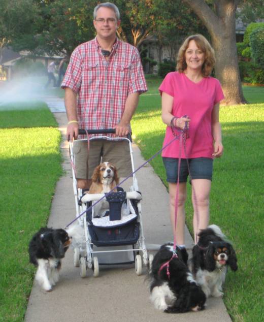 Our sweet little 14 year old rescue KC, could not walk with us anymore. She was so heart broken when we would leave without her. We found this stroller at a garage sale and now she does not have to be left behind. Look at the smile on her face. She gets so much attention in the neighborhood. Everyone wants to see the doggie in the stroller.